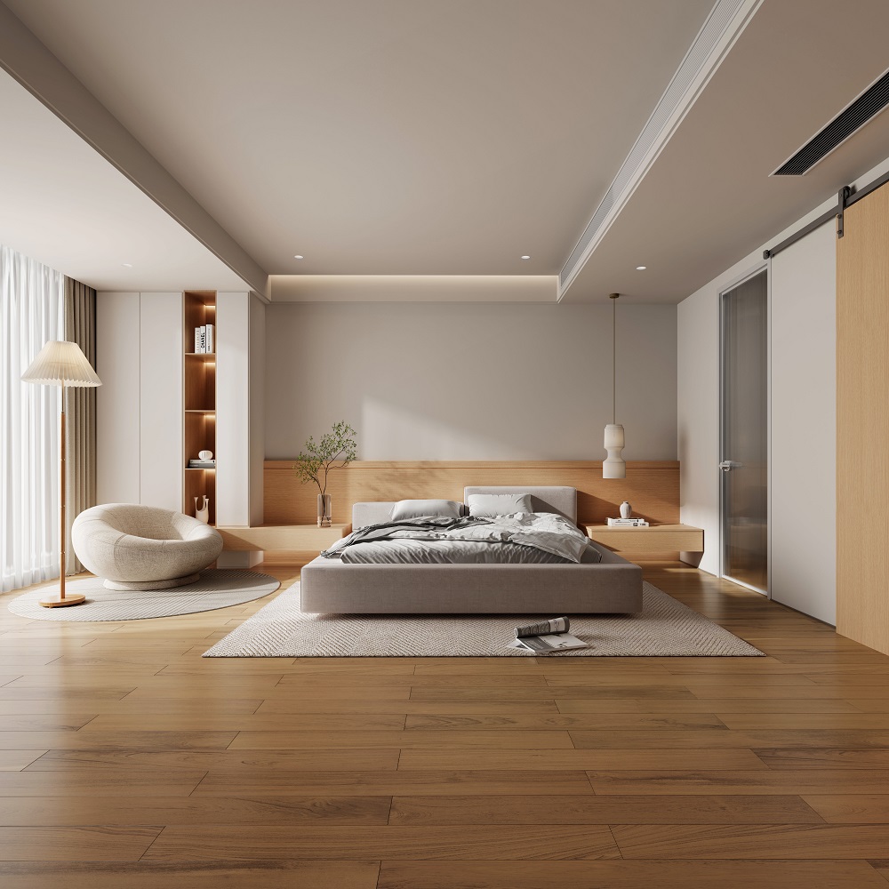 此外,在新品推介上,他強(qiáng)調(diào)了木香·居的實(shí)木地板不同以往的展陳方式,從地面材料蔓生為墻面、床品等??臻g延續(xù)獨(dú)有美學(xué)的同時(shí),更巧妙呼應(yīng)了木香·居“始于地板,成于空間”的生活哲學(xué)。不僅為消費(fèi)者提供了更加全面和專(zhuān)業(yè)的服務(wù),也是木香·居品牌與設(shè)計(jì)對(duì)自然和家居思考后的實(shí)踐探索。