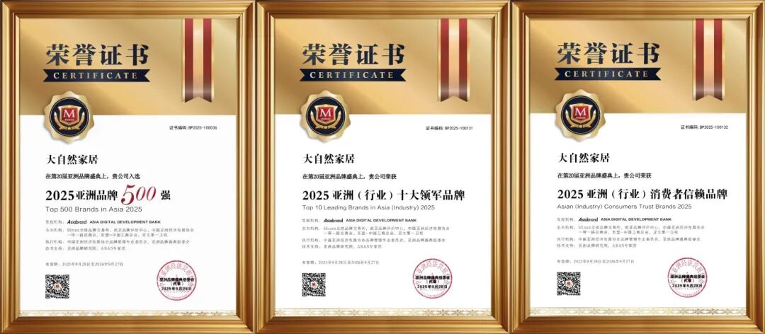 連續(xù)8年蟬聯(lián)“亞洲品牌500強(qiáng)”,是大自然家居堅(jiān)守長(zhǎng)期主義的榮譽(yù)注腳。從單一產(chǎn)品到大家居產(chǎn)業(yè)生態(tài)的構(gòu)建,不僅是產(chǎn)業(yè)格局的升華,亦是源于三十年來(lái)對(duì)產(chǎn)品、技術(shù)與責(zé)任的靜水深流,更是市場(chǎng)與消費(fèi)者信賴的雙重回響。征程未盡,步履不停。未來(lái),大自然家居將繼續(xù)以健康家居為基石,擔(dān)當(dāng)生活方式的倡導(dǎo)者與綠色未來(lái)的建設(shè)者,以產(chǎn)品力、布局力與責(zé)任力,持續(xù)賦能美好人居,穿越周期,與行業(yè)共進(jìn)、與時(shí)代同行。