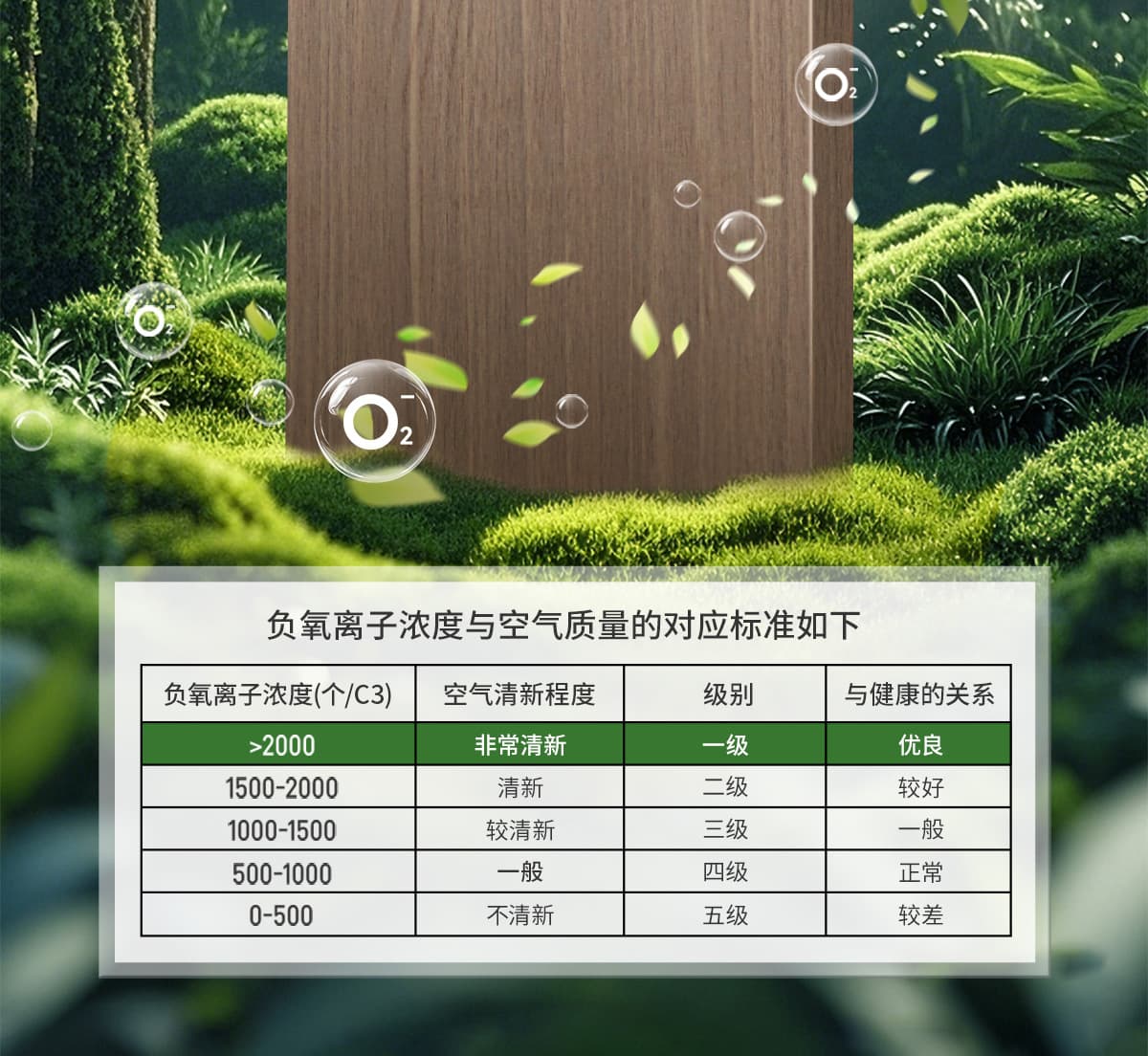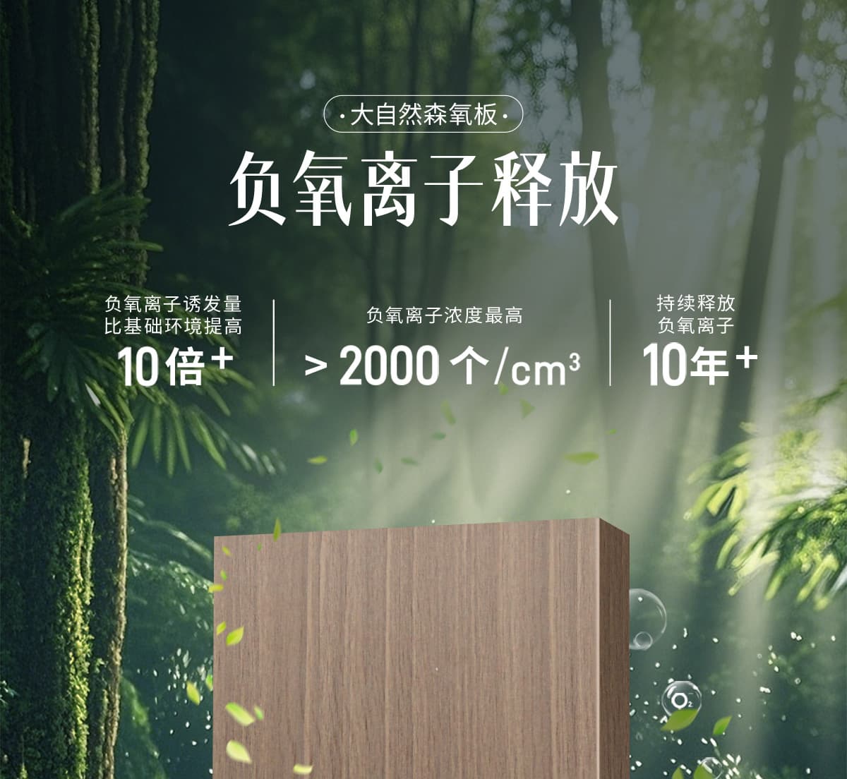 誘發(fā)空氣負離子量 比基礎(chǔ)環(huán)境提高10倍+