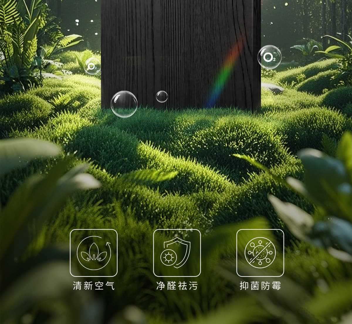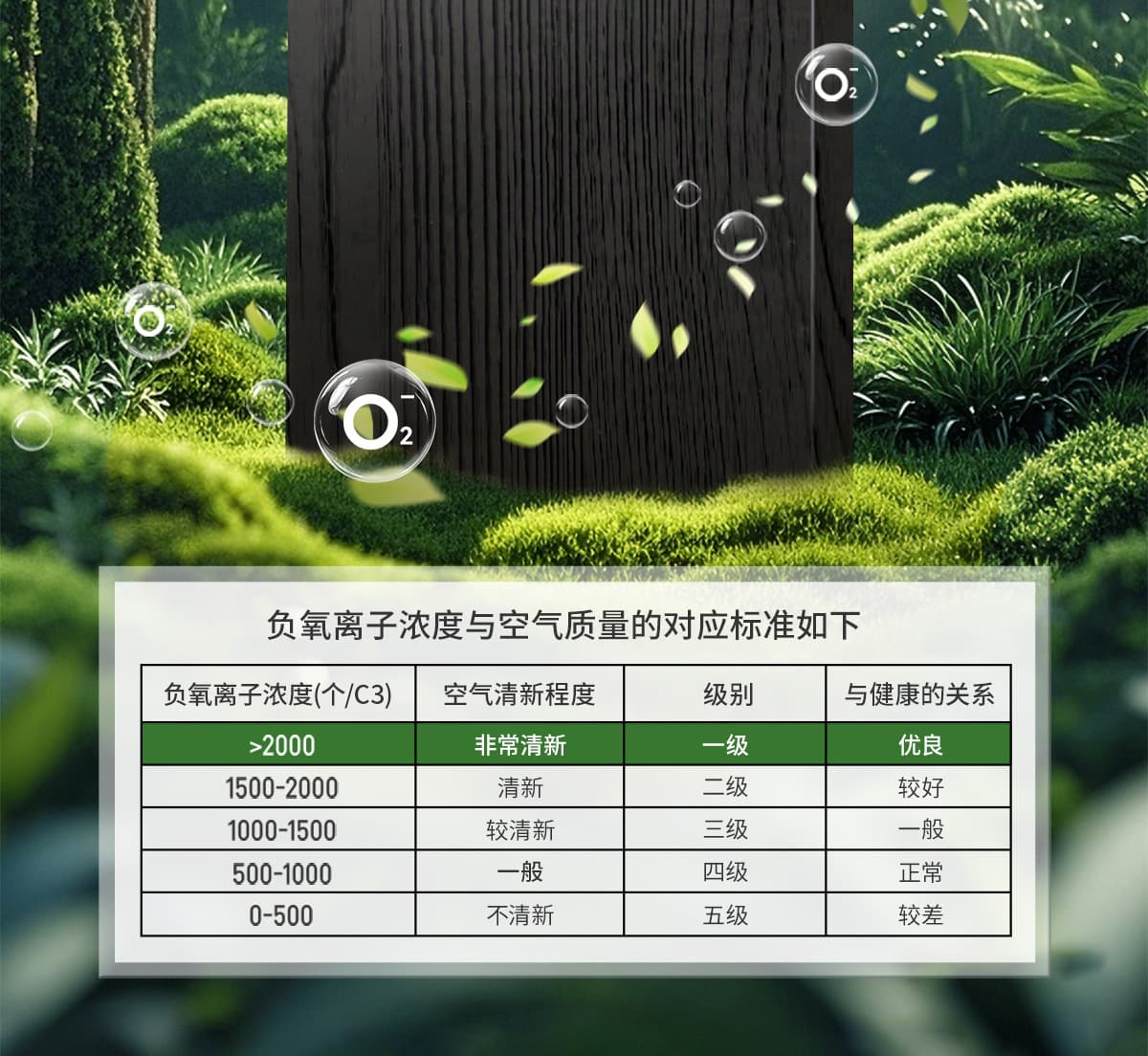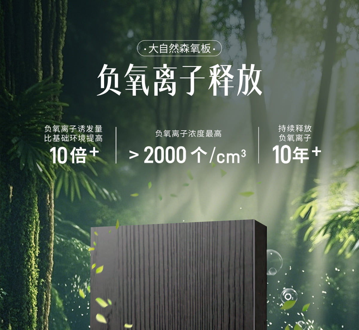 誘發(fā)空氣負(fù)離子量 比基礎(chǔ)環(huán)境提高10倍+